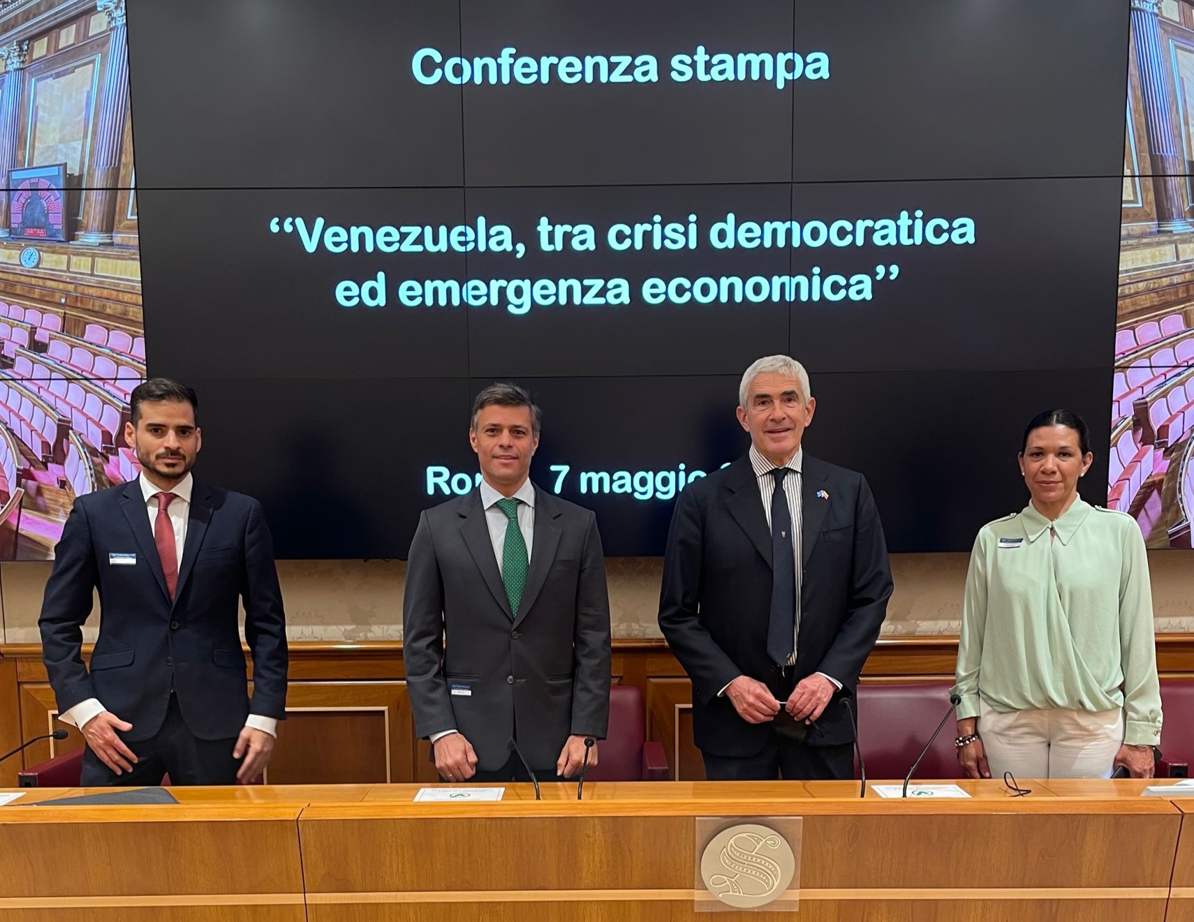 Conferencia de prensa «Venezuela, entre crisis democrática y económica» en el senado italiano junto al senador Pier Ferdinando.