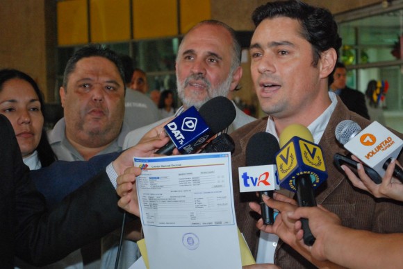 Hoy el rector Vicente Díaz le entregó a nuestro Responsable Político Nacional, Carlos Vecchio, el documento que certifica formalmente la restitución por parte de Consejo Nacional Electoral de los derechos políticos de Leopoldo López