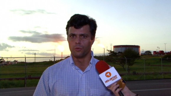 Leopoldo López  en los pozos de extracción de crudo en Quiriquire, ubicados en Maturín, estado Monagas