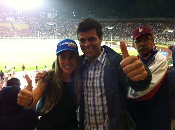 Leopoldo López, aupó a la selección venezolana de fútbol desde el estadio de Pueblo Nuevo en San Cristóbal, sumándose a la fanaticada de la Vino Tinto que viajó desde todo el país para respaldar a sus jugadores.