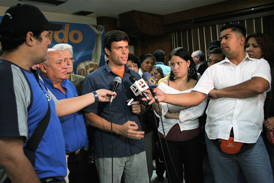 Leopoldo López: aqui no podemos plantear un proyecto restauradorLeopoldo López, ex alcalde de Chacao y uno de los principales voceros de la oposición, propone el mecanismo de las primarias para legitimar y renovar liderazgos en municipios y circuitos electorales. Una opción que permita, incluso, la participación a gente que venga del oficialismo, que quiera “la idea de transformación de lo que pasó y de lo que está pasando en Venezuela”. De lo contrario, “no vamos a construir una mayoría. Puede haber, ocasionalmente, un rechazo mayoritario al Gobierno, pero si no logramos convertirlo en una fuerza organizada, identificada con ese anhelo de transformación que quieren los venezolanos, no será suficiente para impulsar los cambios”.