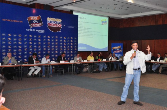 El Coordinador Nacional del Comando Tricolor, Leopoldo López, aseguró que el triunfo del candidato presidencial Henrique Capriles Radonski el 7-O, será garantizado por un equipo nacional de campaña que se desplegará con fuerza y organización en torno a todos los centros de votación del territorio nacional.