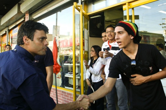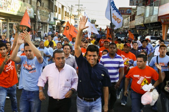 El precandidato presidencial, Leopoldo López, recorrió las calles del centro de Punto Fijo en el estado Falcón acompañado por cientos de jóvenes quienes con volantes y al ritmo de consignas a favor de la Paz, el Bienestar y el Progreso, compartieron con los lugareños el proyecto de país La Mejor Venezuela que impulsa el abanderado de Voluntad Popular.