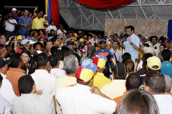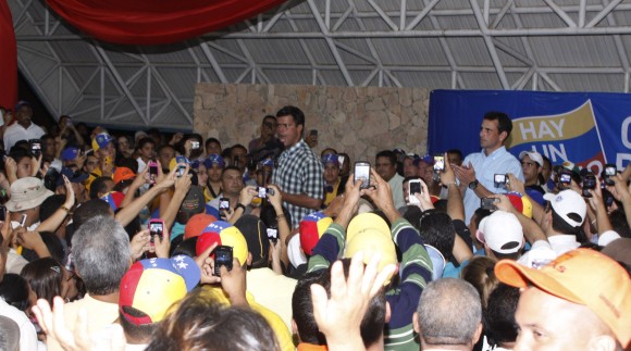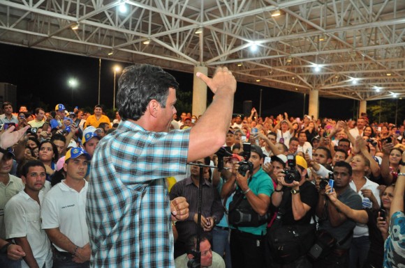 Más temprano el candidato presidencial, Henrique Capriles Radonski, realizó contactos casa por casa en Aragua de Barcelona y en Santa Ana, estado Anzoátegui, llevando casa por casa su propuesta de país junto al candidato a la gobernación de esa entidad, Antonio Barreto Sira.