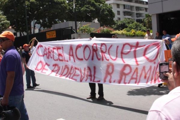 Los manifestantes de Voluntad Popular, quienes acudieron portando imágenes del Ministro RamÃrez y carteles con la frase âCárcel a los corruptosâ, tomaron la entrada principal de la estatal petrolera. López explicó que âno podemos permitir que se juegue con la alimentación de nuestro Pueblo. Con 130 mil toneladas de comida perdida se pudo haber alimentado por dos años a todos los niños venezolanos. No se debe permitir que se juegue con el hambreâ.