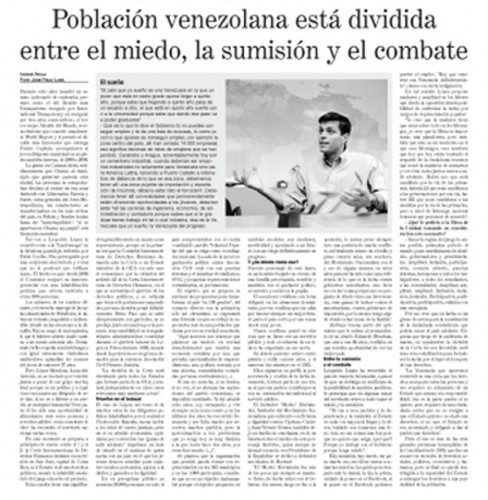 Población venezolana está dividida entre el miedo, la sumisión y el combate