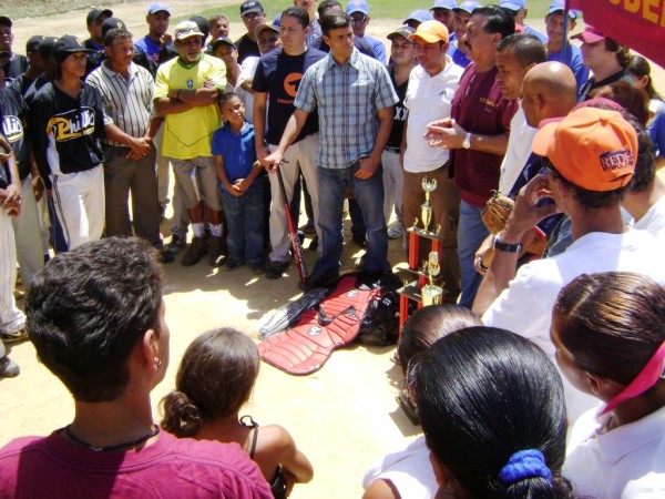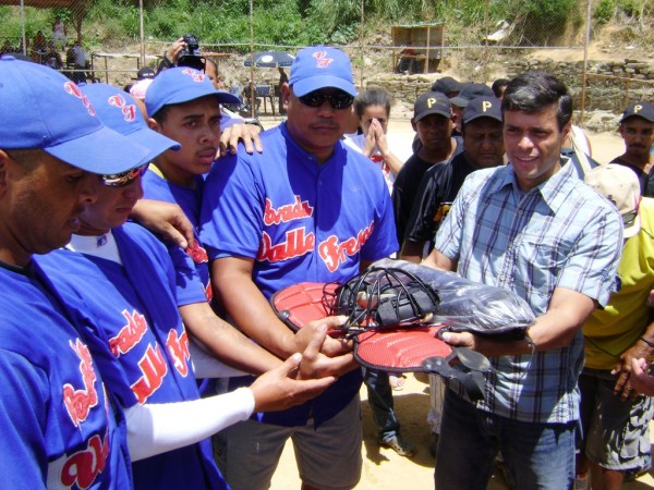 En el Polideportivo de El Winche, los activistas de Voluntad Popular donaron a la comunidad equipos deportivos para la práctica de béisbol y fomentar la cultura de la no violencia desde los más pequeños hasta los adultos.